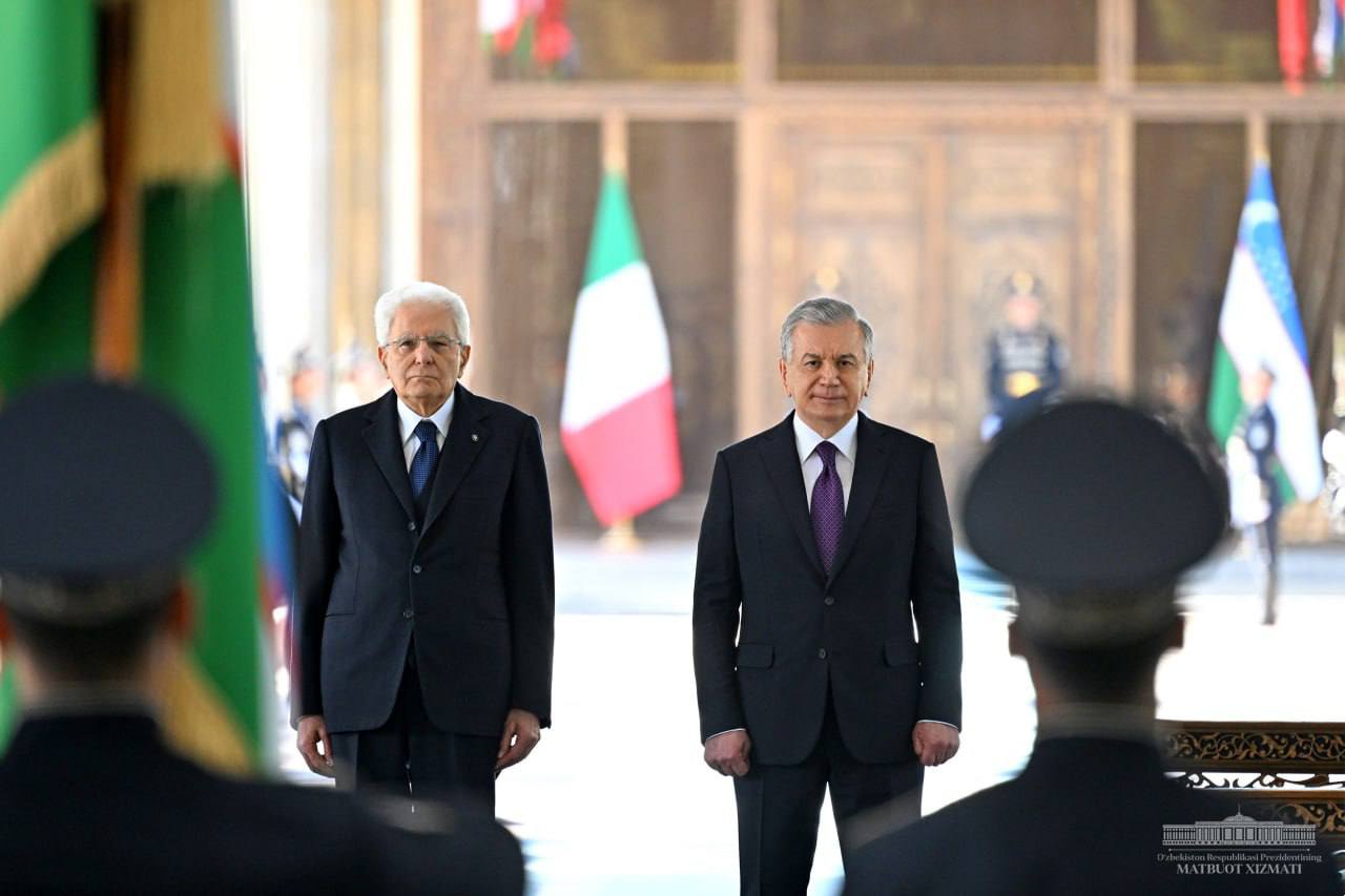 On November 10, the President of the Italian Republic Sergio Mattarella, who is in Uzbekistan on an official visit at the invitation of the President of the Republic of Uzbekistan Shavkat Mirziyoyev, was officially received at the Kuksaroy Residence.