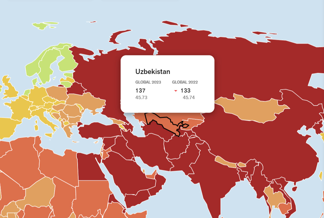 In the Freedom of the Press Index for 2023, compiled by the international non-governmental organization Reporters Without Borders, Uzbekistan ranked 137 out of 180 countries. Last year, the republic occupied the 133rd place.