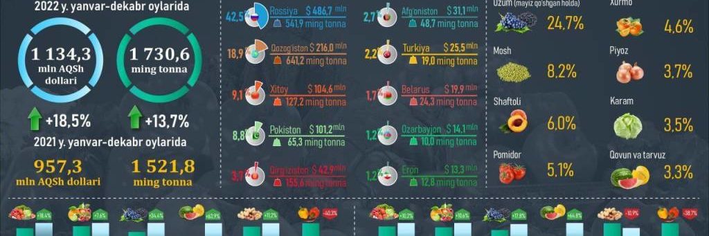 According to the results of January-September 2020, the foreign trade turnover (FTT) of Uzbekistan reached US$27.49 billion, compared to the same period of last year, decreased by US$3.75 billion. Of the total volume of the FTT, exports made up US$12.47 billion (by January-September 2019, a decrease of 6.0% was noted), and imports – US$15.02 billion…